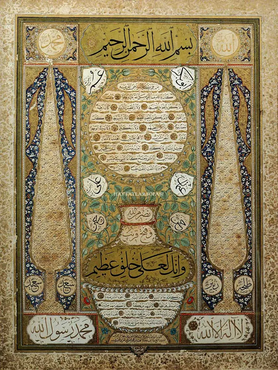 En’amı gösterir. Yazıyı inceleyen Mahmut Celâleddin Efendi eşinin Nesih hattındaki gücüne